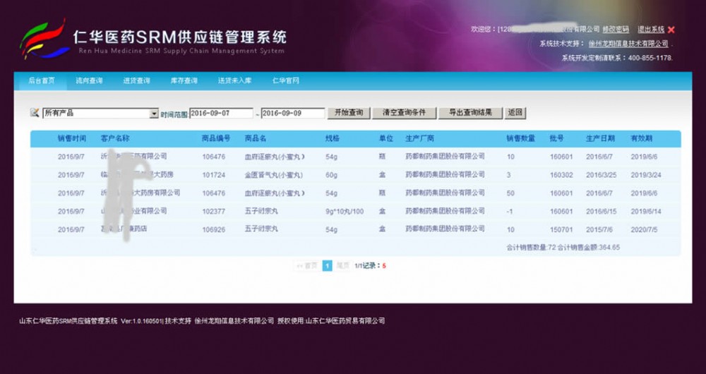 供應商隨時可以登錄系統(tǒng)按照指定要求進行檢索藥品流向并導出查詢結果。